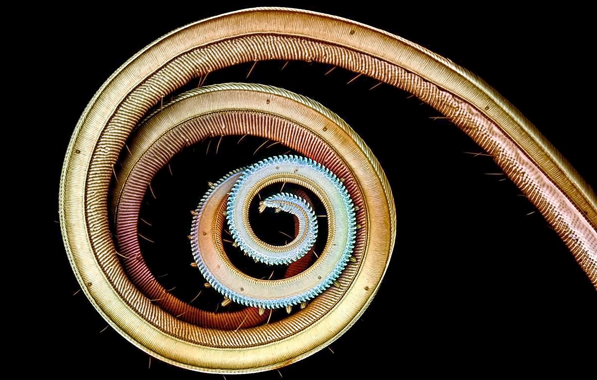 Хоботок бабочки под микроскопом