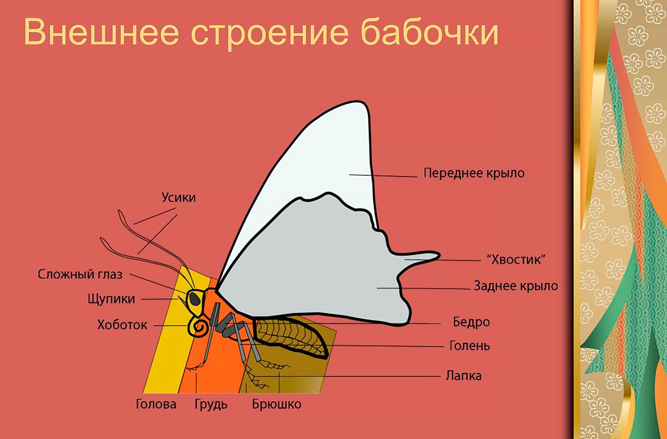 Схематическое строение тела бабочки