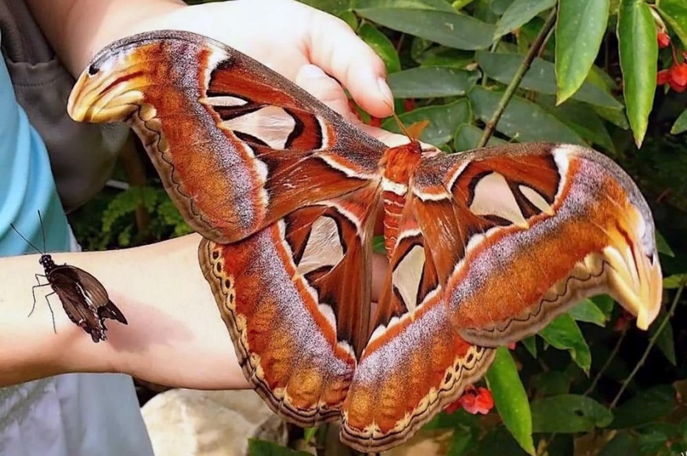 Павлиноглазка Атлас, фото на руке