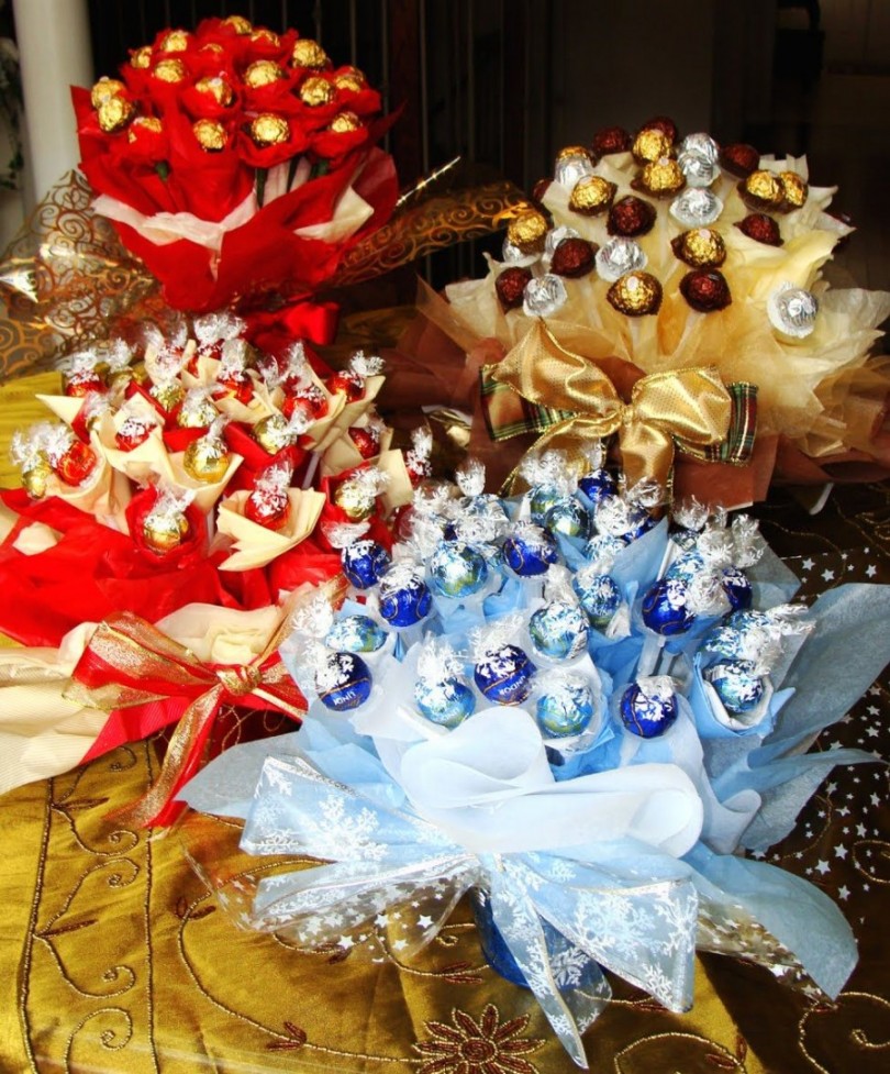 Теперь приведем несколько примеров создания таких конфетных букетов.