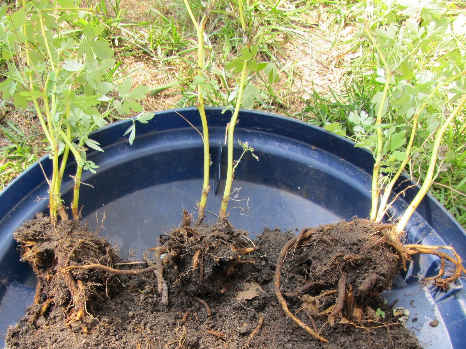 - Куст, возрастом 3-4 года, выкапывается и делится на несколько частей. Каждая из них должна быть с корешками, длиной 10-15 см и почками (не меньше3-4 шт).