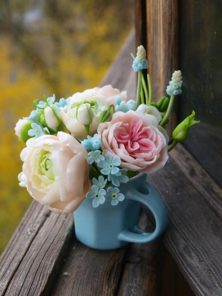 Такие букеты из холодного фарфора можно использовать в декоре домов