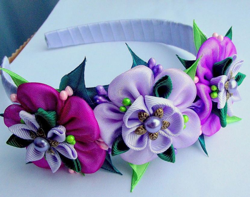 - Детские украшения. (Всевозможные обручи, заколки, резинки декорируют хорошо скрепленными цветами, чтобы при бурной деятельности малышки украшение не развалилось).
