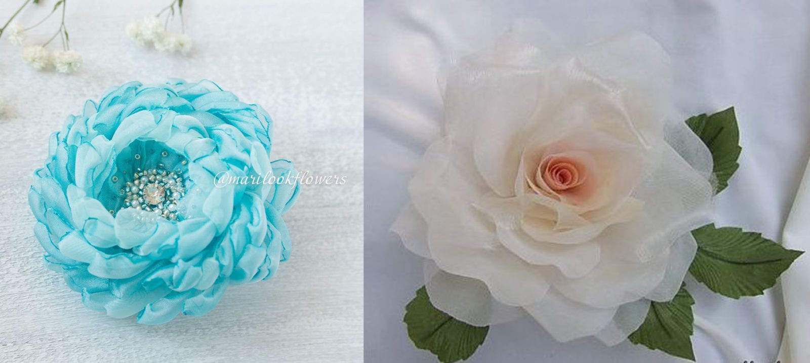 Эта техника – первая ступень в цветоделии и отличный вариант для начинающих мастериц. Лента из органзы имеет кромку, поэтому лепестки смотрятся аккуратно, а обрабатывать огнем требуется только край. Ширина и длина ленты зависит от задуманного размера цветка. Создание цветов в этой технике – отличный вариант для совместного творчества с детьми.