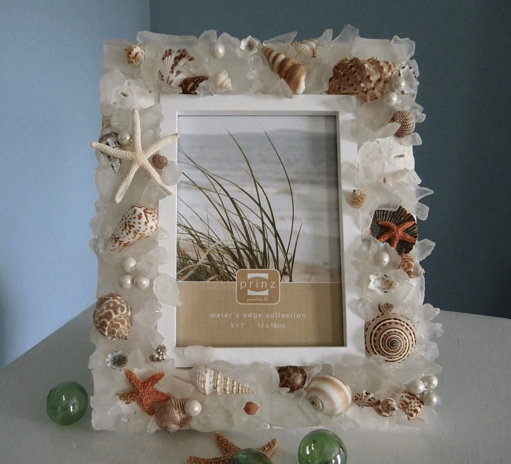 Рамка из ракушек будет напоминать о теплых солнечных деньках.