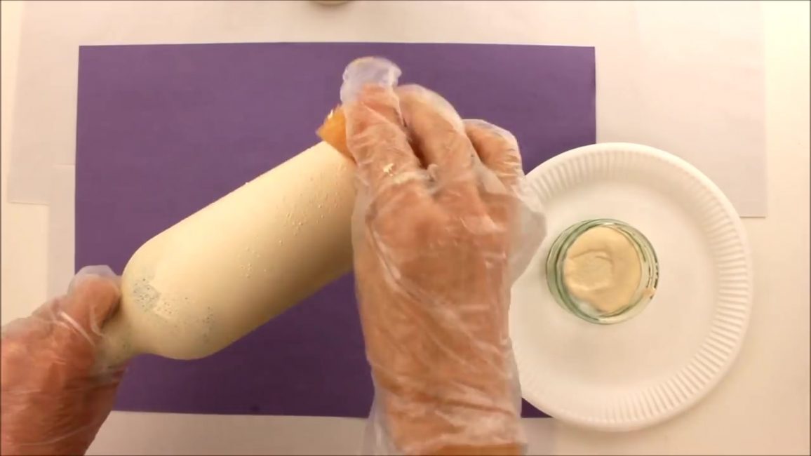 - Подготавливается поверхность бутылки грунтовкой и краской.