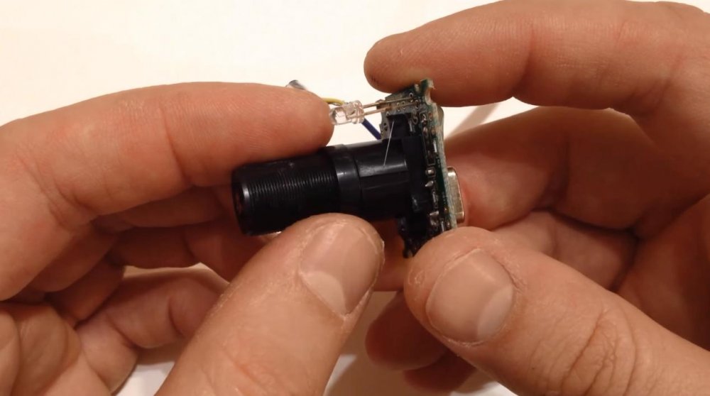 - Обеспечиваем питание. Для этого из провода, который будет соединять бывшую камеру и компьютер, выводим два провода +5V и -5V. После чего оптическую часть можно считать готовой.