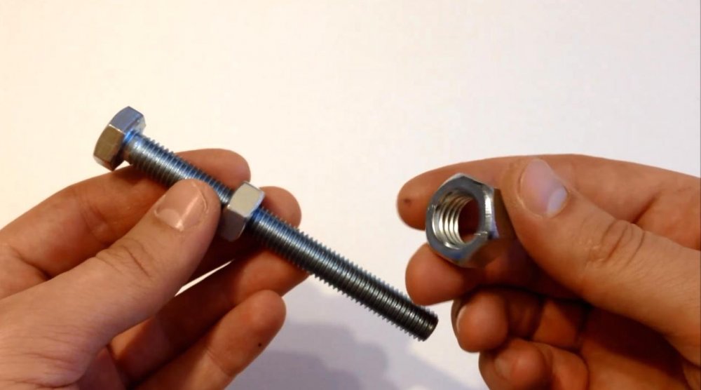 Для настройки отступа рамки от смотрового стекла используем болт М8х100 мм. Нам понадобится две гайки под размер болта, и две большего размера. Берем эпоксидный клей, и в трех местах приклеиваем гайки болта к штативу. Закрученную на конец болта гайку также можно зафиксировать эпоксидкой.