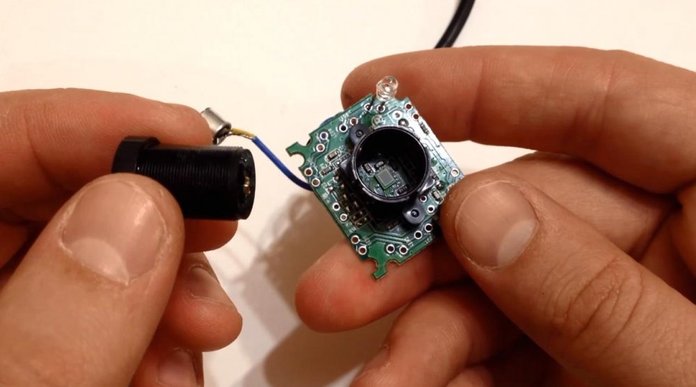 Обматываем стык объектива камеры с цилиндрическим корпусом изолентой. При желании его можно дополнительно проклеить термоклеевым пистолетом. На этом этапе измененный объектив уже можно проверить в действии.