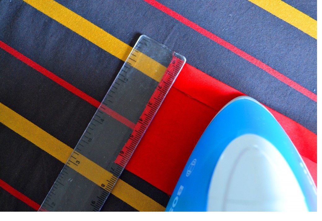 Подогнутый край подгибаем ещё раз. Это предотвратит осыпание ткани при проведении последующих манипуляций. Снова проглаживаем.