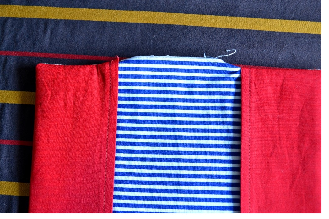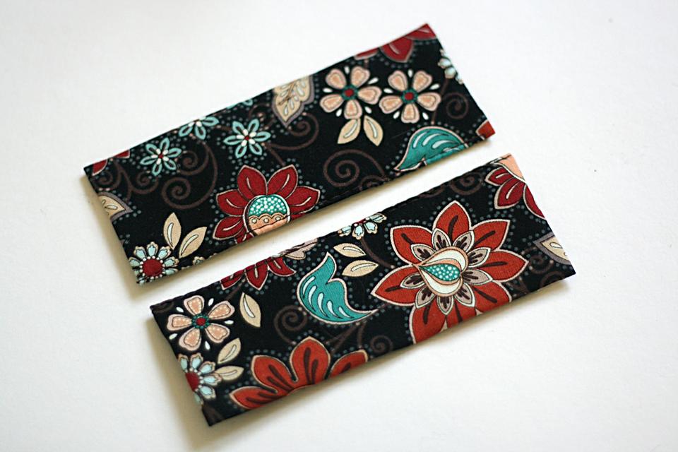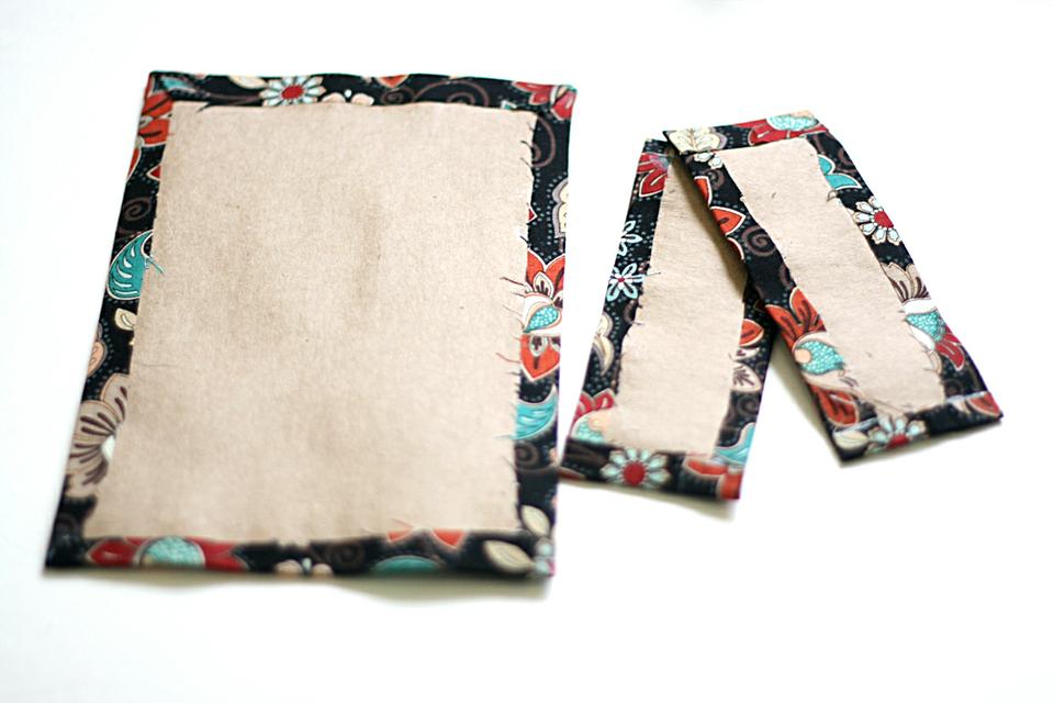 Из ткани вырезаем еще один прямоугольник 5*16 см, который будет закрывать серединку обложки изнутри.