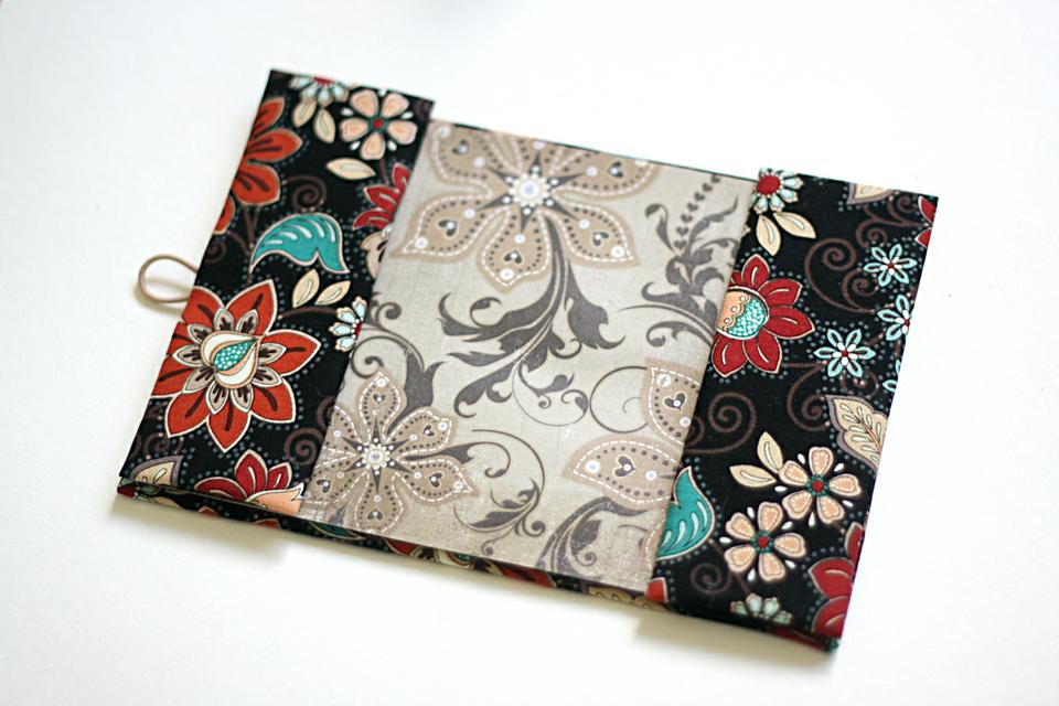 Ткань для наружной стороны стоит выбрать поплотнее — в идеале плотный хлопок. То же самое касается наполнителя — только так обложка на паспорт будет хорошо держать форму, а значит, защищать его. Расцветка ткани — по Вашему желанию. Вот, например, возможен такой вариант оформления внешней стороны обложки: