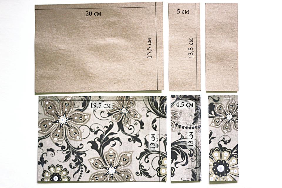 Вырезаем из скрап бумаги прямоугольники 9,3*13,3 см.