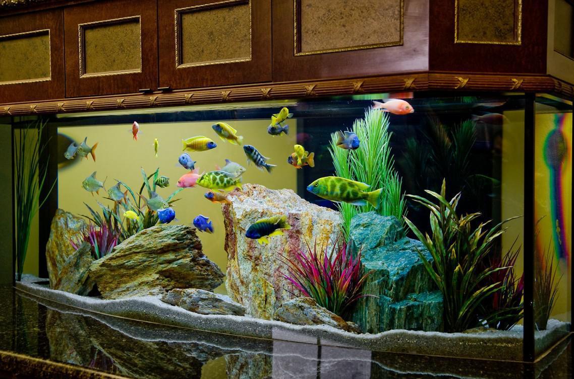 Идеально, когда задний фон аквариума сочетается с рыбами, которые в аквариуме плавают, а также со стилем выполнения аквариума. Можно декорировать аквариум и внешне, но так, чтобы этот декор не мешал жителям аквариума.