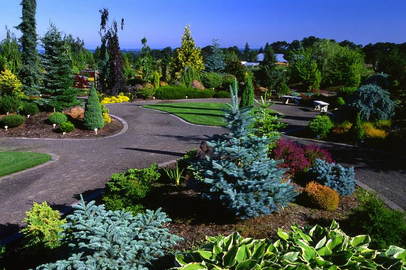 Голубая ель смотрится отлично среди камней. Ее можно высадить на переднем плане, щели между камнями засеять очитком, гвоздикой, портулаком, живучкой. Центральную часть альпийской горки украшают можжевельником скальным и казацким.