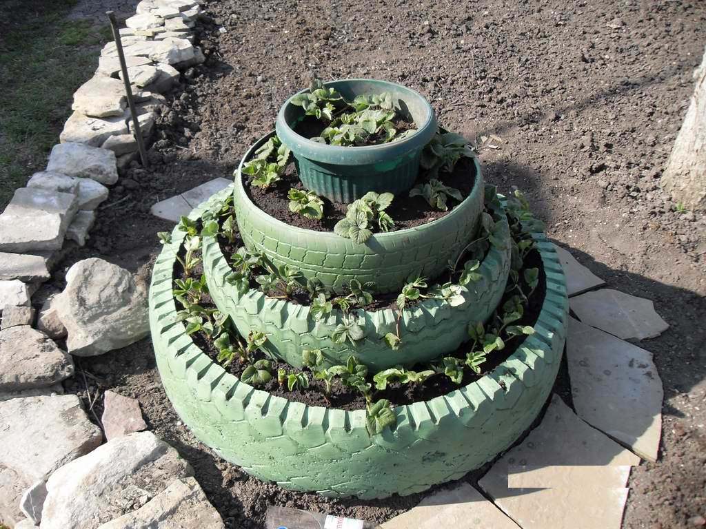 Этапы изготовления многоярусной клумбы для клубники своими руками
