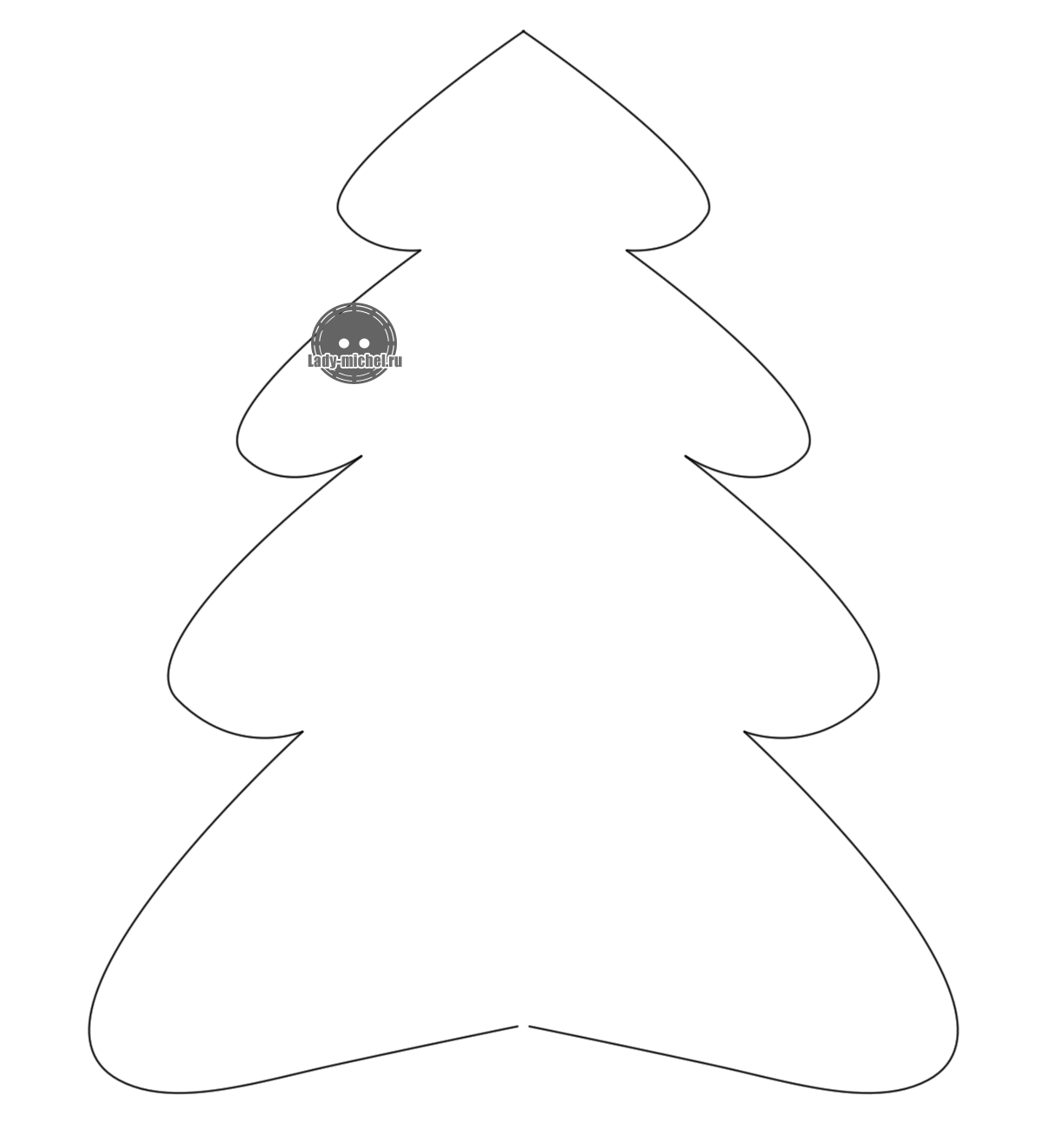 Изготовление поделки начинают с рисования лекала с плавными линиями. На фетр, сложенный пополам, переводят эскиз ёлки и вырезают две зеркальных детали.