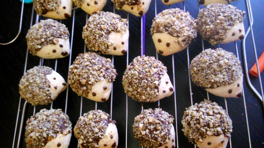 Если вы предпочитаете работать с дрожжевым тестом, приготовьте пирожки с начинкой в виде ежика, и ножницами сделайте надрезы, по спинке имитируя иголки. Глазки и носик сделайте из изюма.