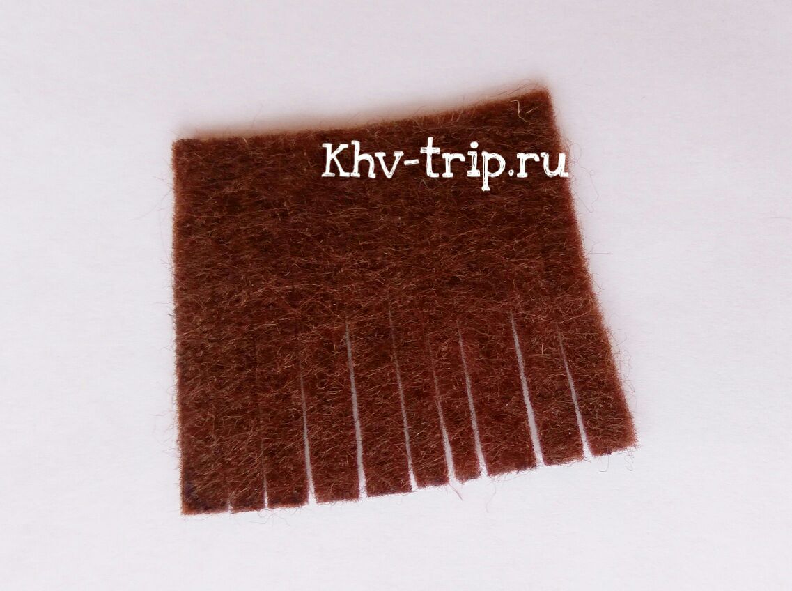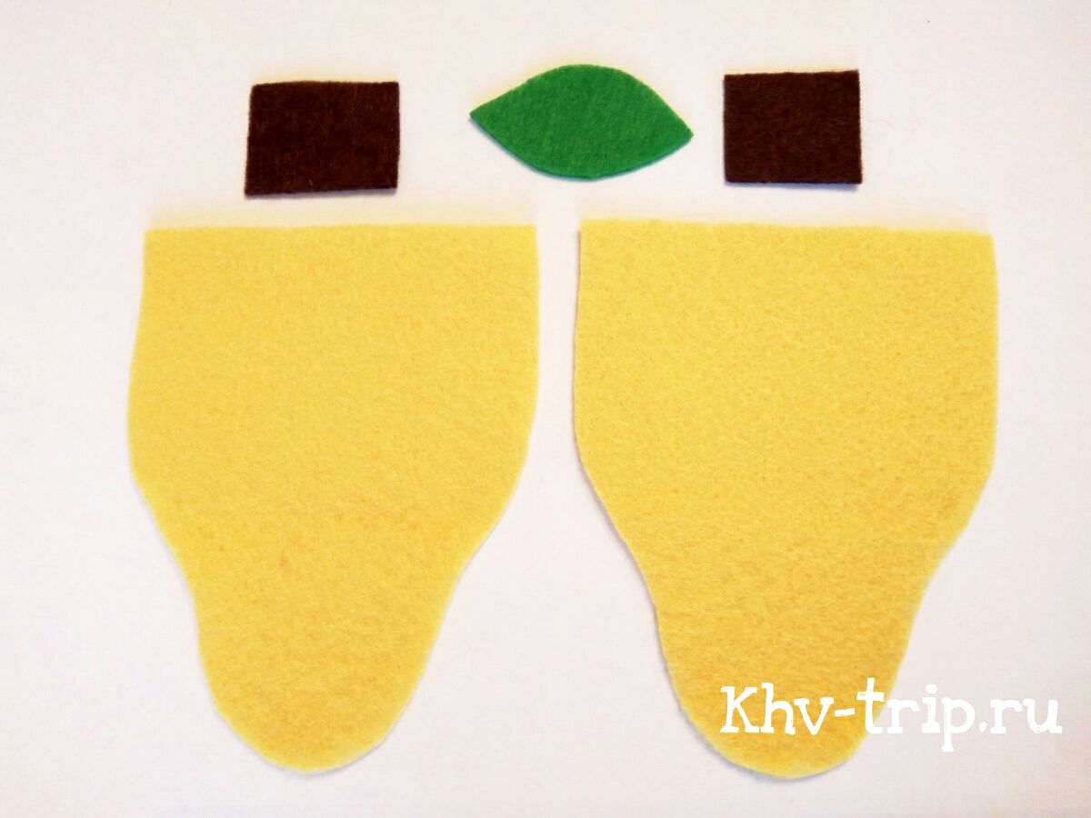 - Берем фетр, сложенный в четыре раза, разрезаем пополам