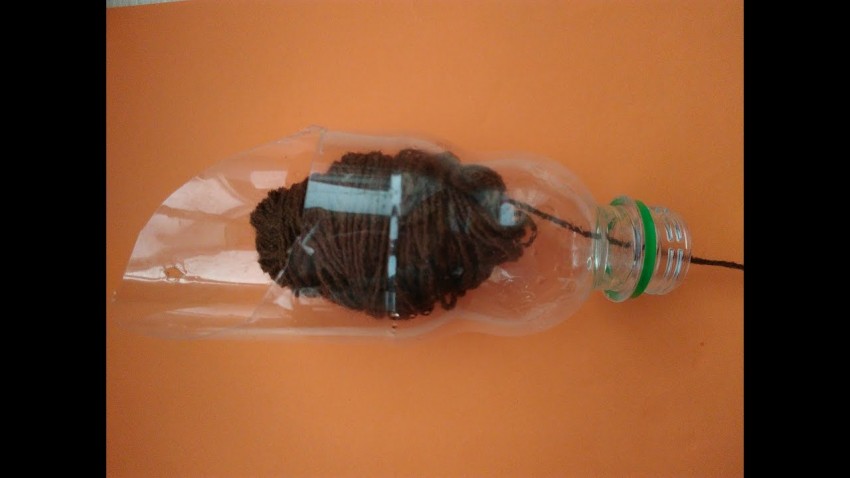 зафиксируйте края проволоки внутри горлышка бутылки при помощи пробки из асбеста;