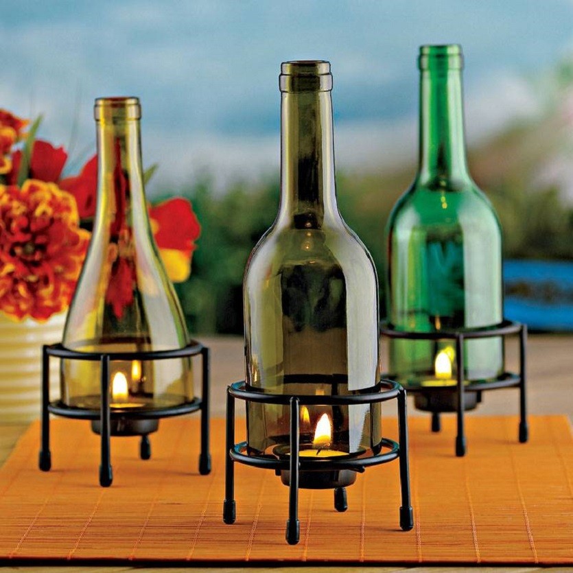 Из стеклянной бутылки можно соорудить самые креативные штучки для дополнения интерьера дома, если после разрезания украсить их всевозможными элементами. Берутся стеклянные изделия как из прозрачного материала, так и разноцветные, которые можно сочетать друг с другом. Прозрачную стеклотару можно покрасить в разнообразные цвета, обклеить бумагой, материей, ленточками. Процесс работы, конечно, кропотливый, но результат радует, так как изделия получаются оригинальными и необычными. Среди поделок собственными руками наиболее часто встречаются: