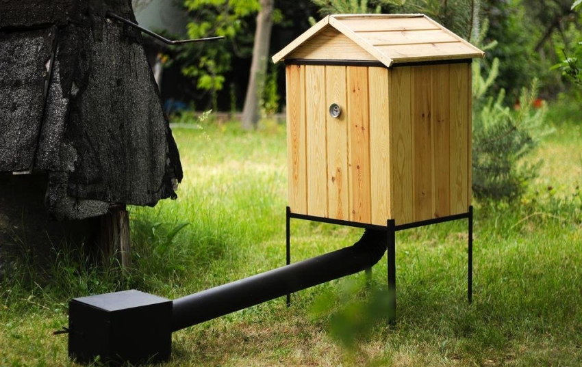 Создание самодельной деревянной коптильни на своем участки потребует соблюдения некоторых правил и внимания к деталям. Схем устройства таких агрегатов множество – принципы же обычно не отличаются из чертежа в чертеж. Чтобы изготовить шкаф холодного копчения, необходимо расположить источник дыма и непосредственную продуктовую камеру в нескольких метрах друг от друга.