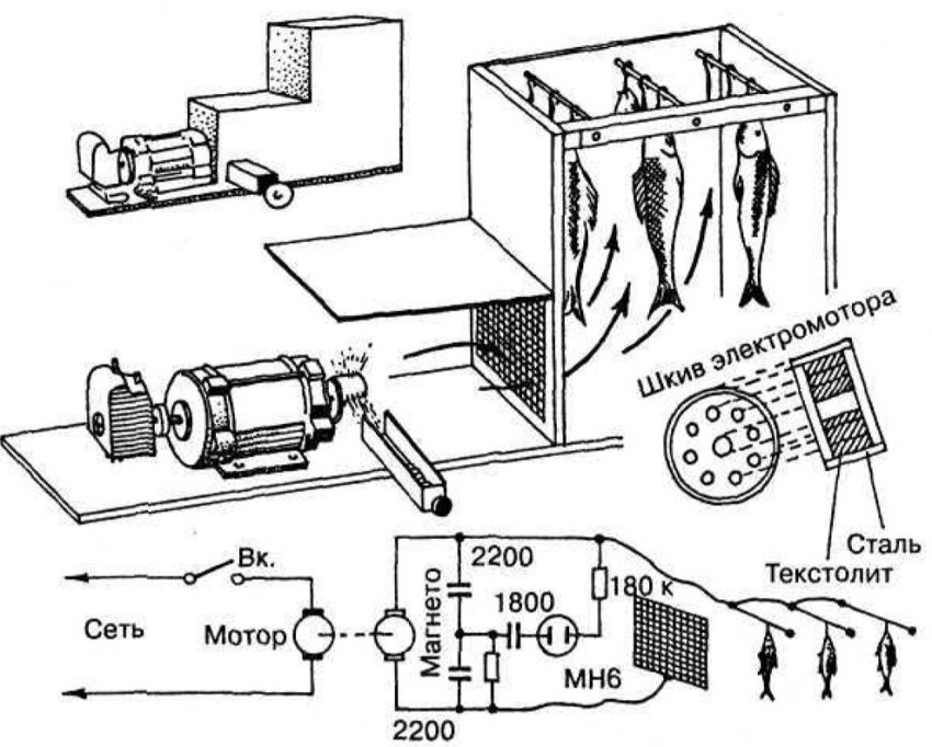 - Для закрепления продуктов внутри нужна решетка или крюки для подвешивания (для рыбы или мяса).