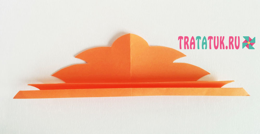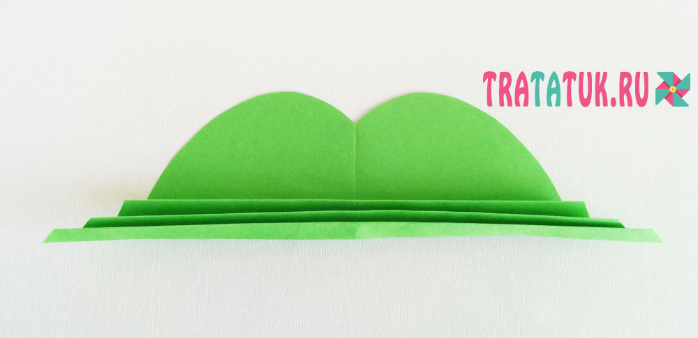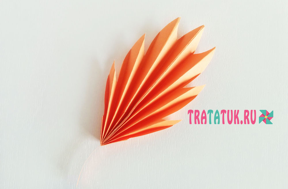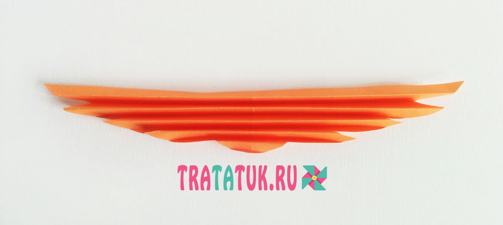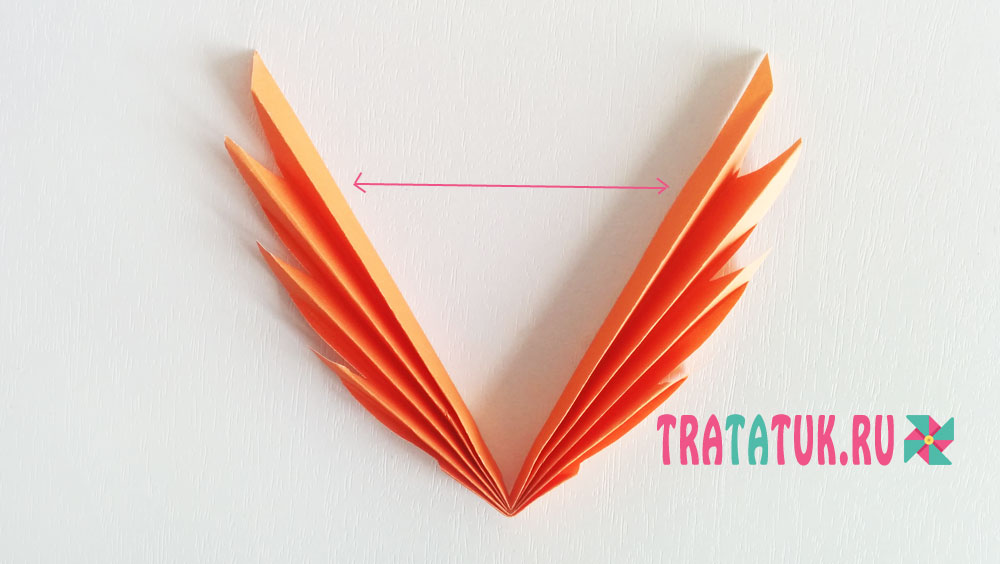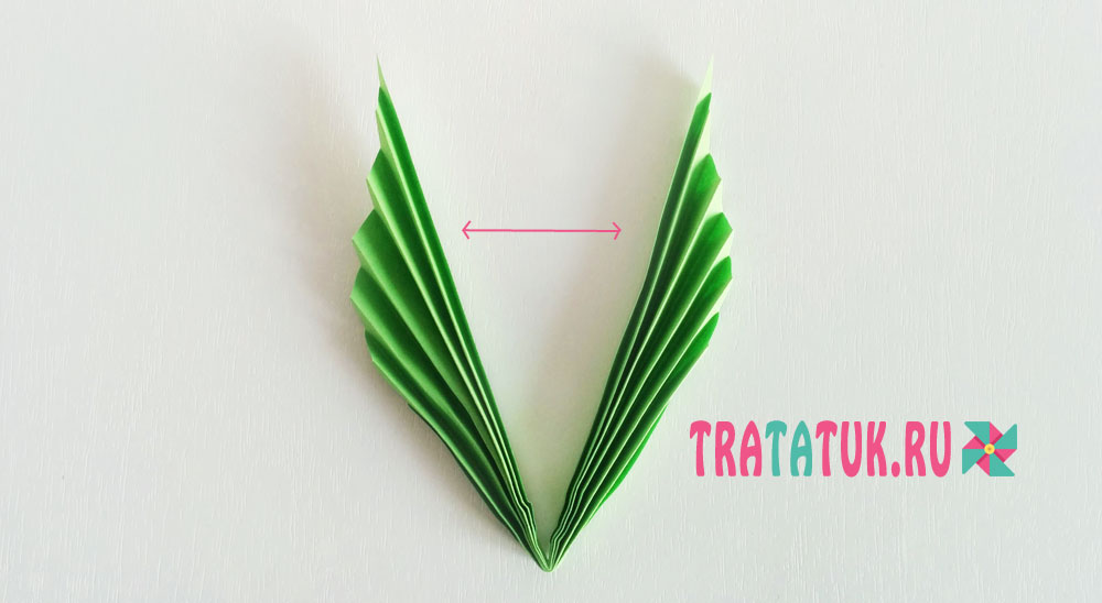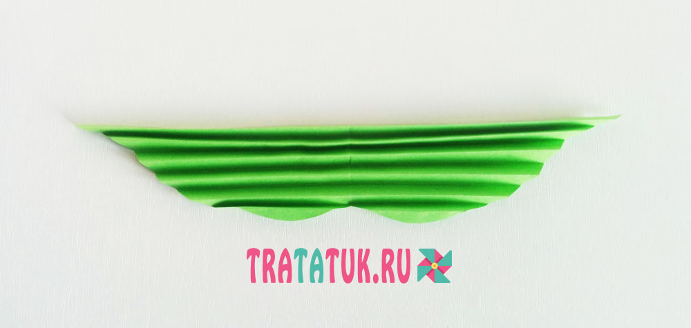 Переверните длинной стороной вверх и согните гармошку пополам. Склейте серединку.