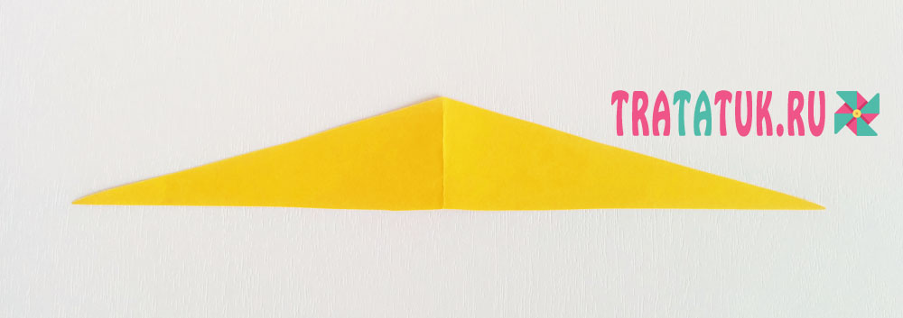 Когда вы закрепите четырьмя складками цветок, ваша заготовка будет сложена таким вот образом.
