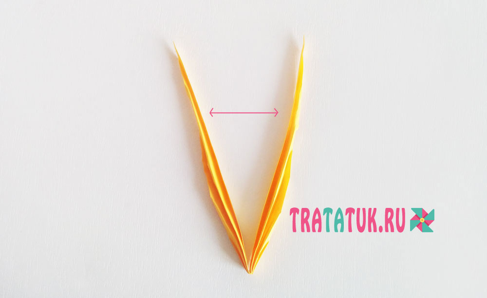 Возьмитесь за уголок (где указка) и зажмите его между пальцами так, чтобы ближайшие лепестки – их снизу хорошо видно – соединились друг с другом (показано стрелкой).