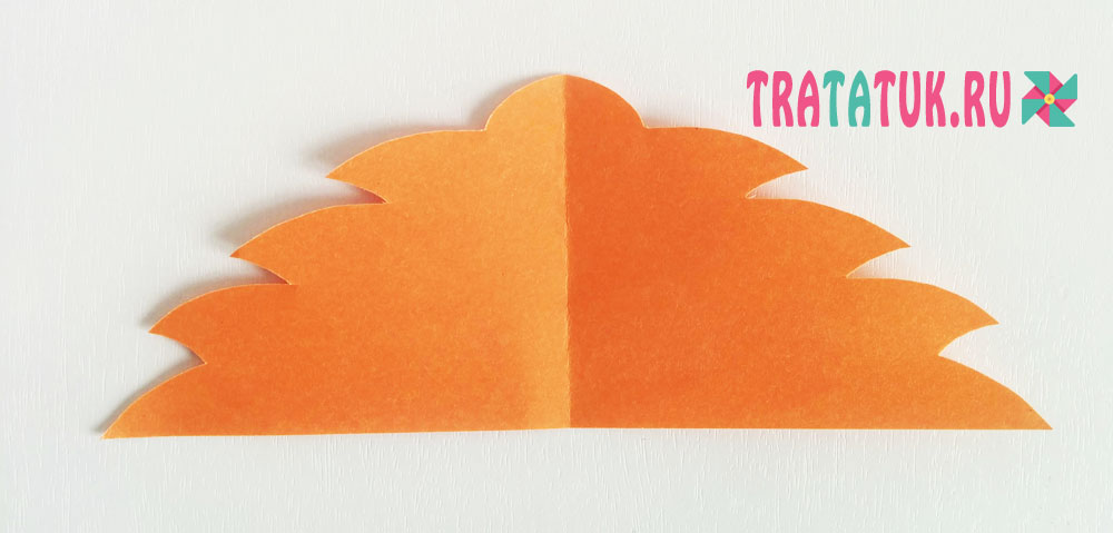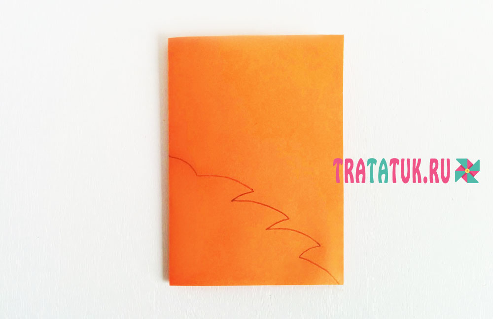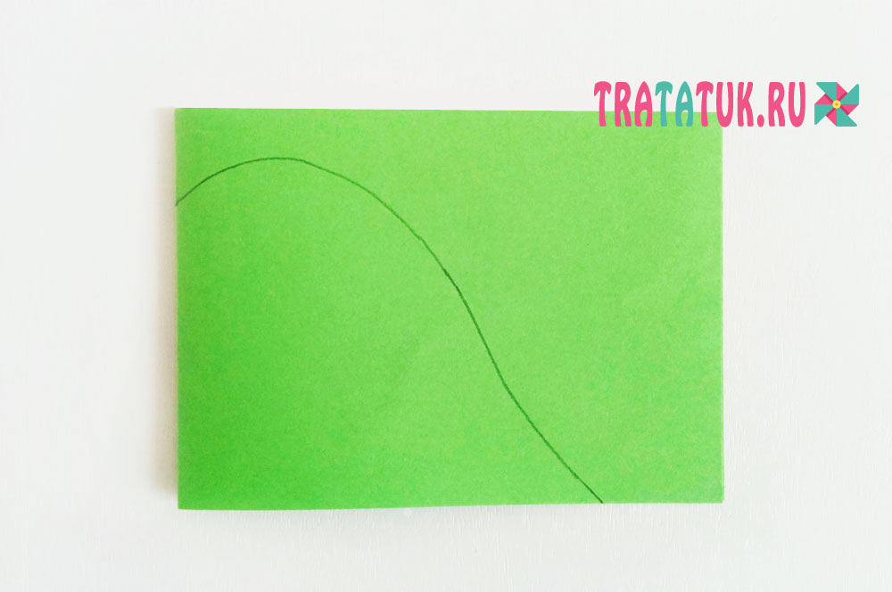 Воспользуйтесь шаблоном или нарисуйте сами выпуклую линию, начало которой от стороны сгиба, а покатый склон доходит до нижней стороны сложенного вдвое листа.
