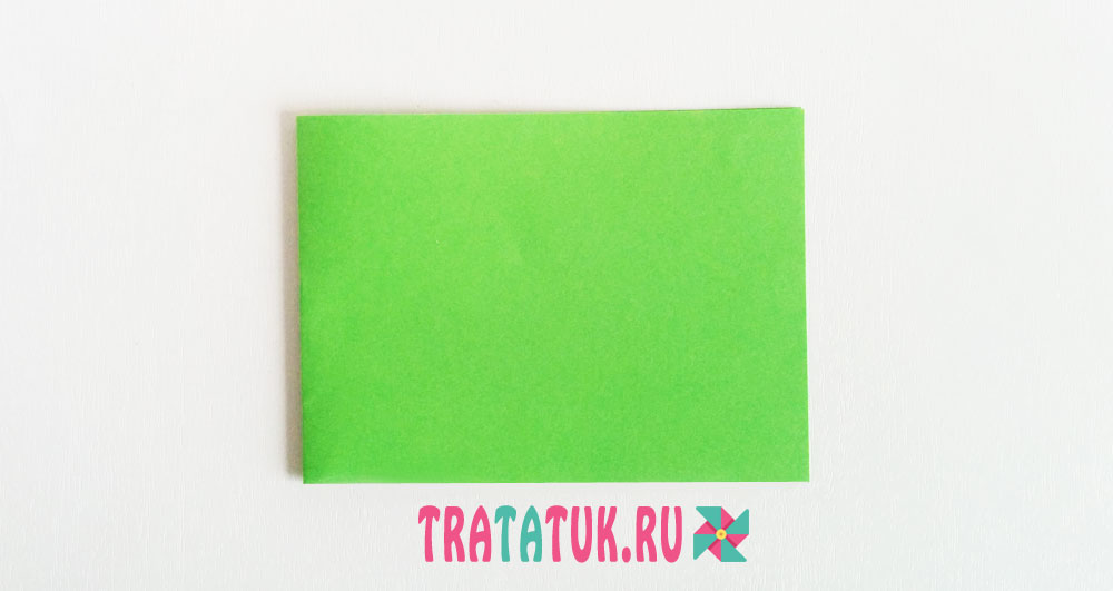 - Чтобы сложить модуль-лепесток, согните квадрат пополам снизу вверх.