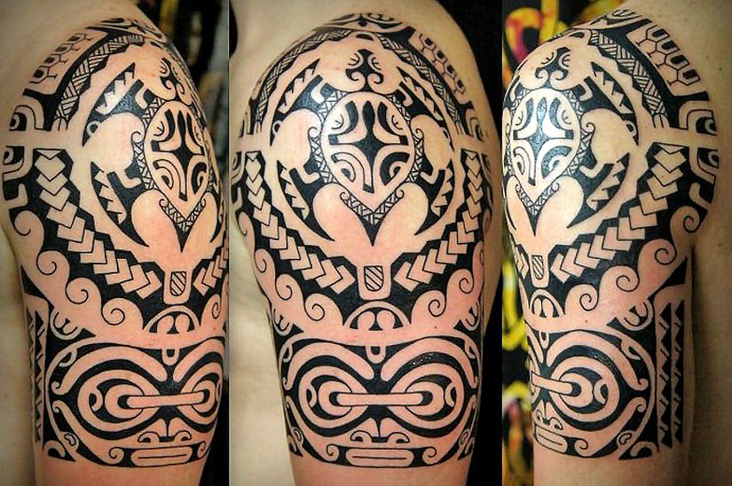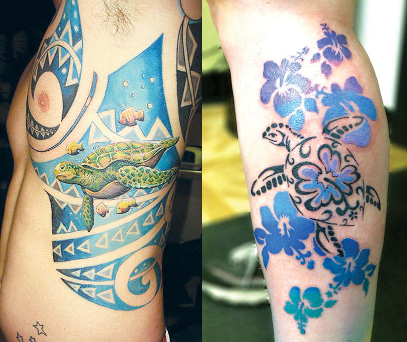 Рисунок, выполненный в полинезийском стиле, заметно отличается от привычных европейцу татуировок. Впрочем, и от японских/китайских тоже. На нём всегда есть традиционные узоры, часто национальные маски и другие элементы. Эти народы верили в то, что подобные тату способны оберегать их от злых сил. Поэтому полинезийская тату черепаха не может восприниматься исключительно, как украшение тела. Схожие сюжеты с узорами прослеживаются и в тату искусстве племён маори из Новой Зеландии.