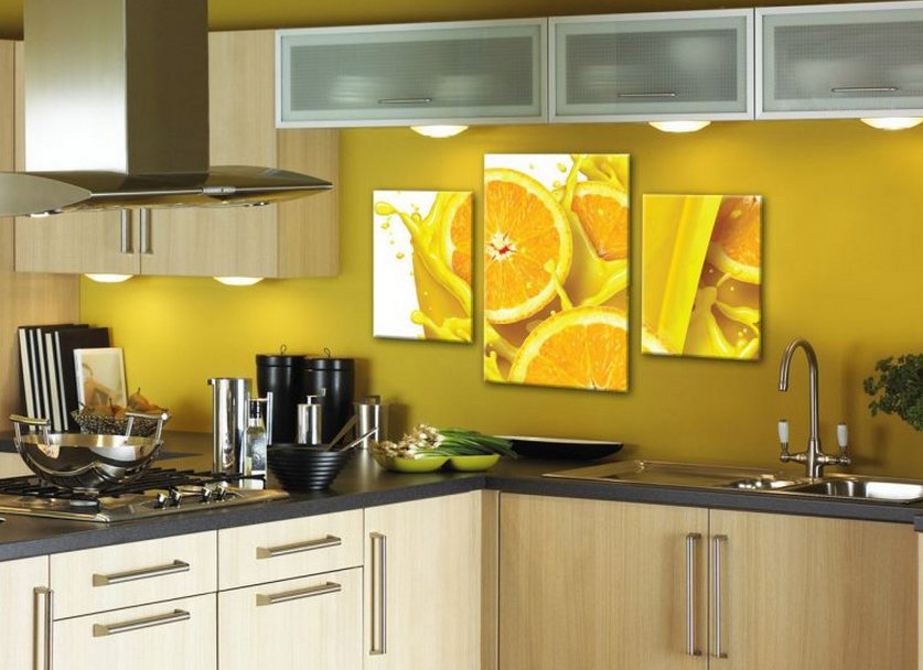 Самым популярным кухонным мотивом, конечно же, является изображение еды. Вы можете выбрать фотографию, используя кофейные зерна , цитрусовые или сладости.