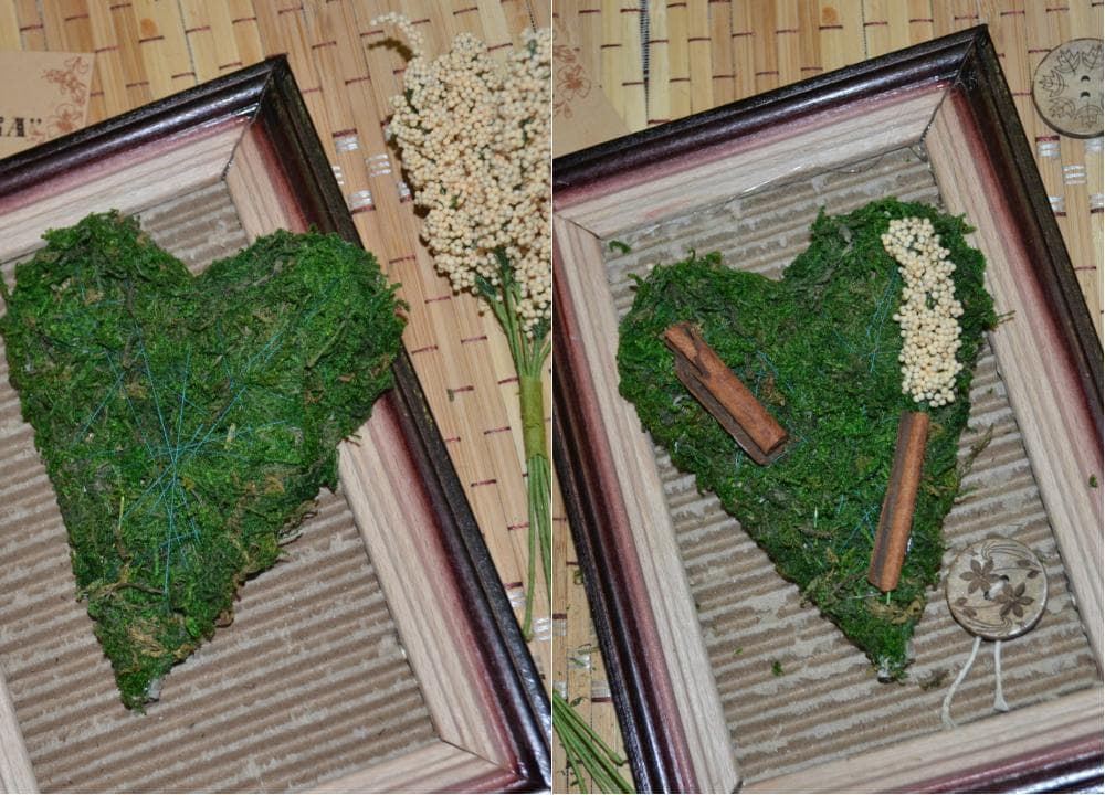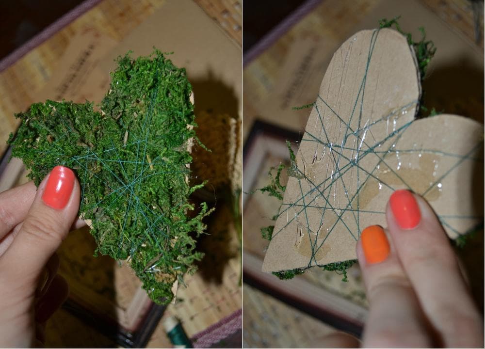 Обматываем сердце с мхом нитью для лучшей фиксации.