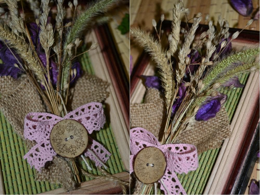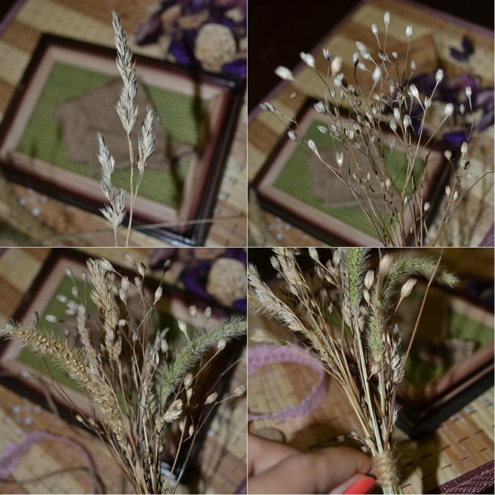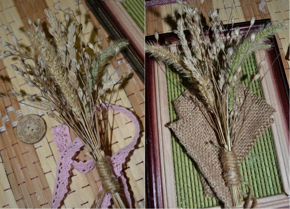 Из сухоцветов собираем букетик и завязываем его шпагатом.