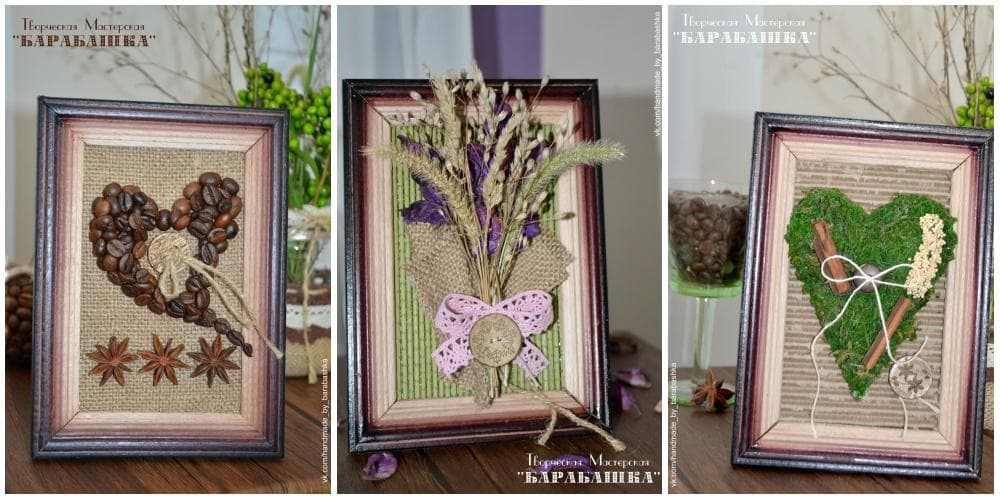С каждым годом популярность эко-тематики все больше возрастает. Именно поэтому предлагаем несколько вариантов картин с использованием природных материалов.