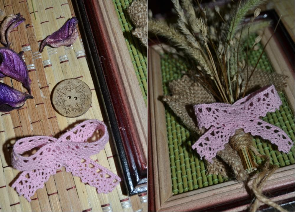 Из кружева делаем бант и соединяем его с букетом.