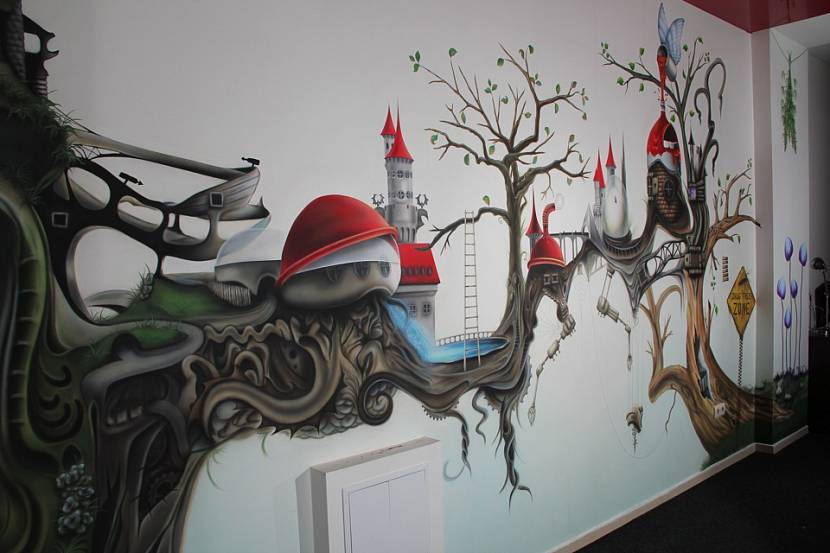 Несложная техника требует применения дорогостоящего оборудования плюс навыков работы с ним – аппарат для компрессии, шланг, распылитель красок. Обычные баллончики не подойдут. Большое давление препятствует созданию тех самых переходов, от тонкости которых зависит объемность и реальность рисунков на большой вертикальной поверхности.