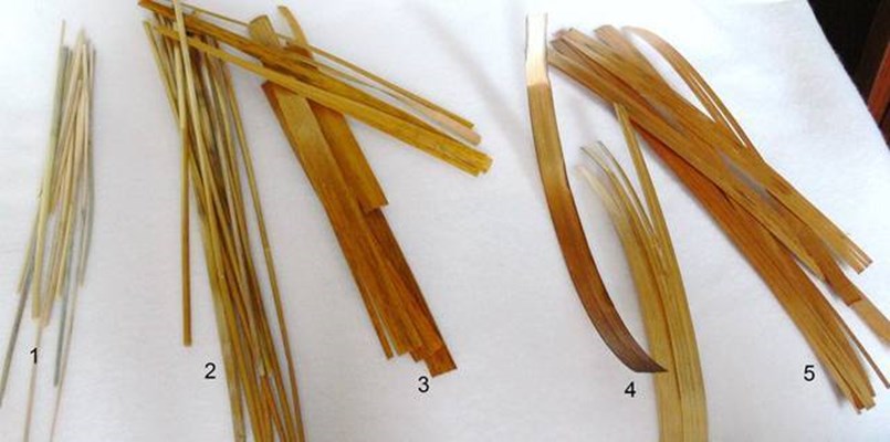 Для работы наилучшим образом нам подойдет ржаная, ячменная или овсяная соломка. Сначала необходимо отобрать качественную среднюю часть собранных соломенных стеблей. Для этого срезанные колосья очищаются от покровных листьев, обрезая соответствующие узелки. Получаются в результате обычные соломенные трубочки различной длины. Далее, отобранные нами трубочки помещаются в емкость с водой и варятся в течение получаса для приобретения особой прочности, мягкости, гибкости и эластичности. Затем, аккуратно, удобнее всего обычным ножом, трубочки необходимо разрезать вдоль стебля, по всей их длине и разладить утюгом с обеих сторон. Результатом проделанной работы получаются необходимые нам соломенные ленты.