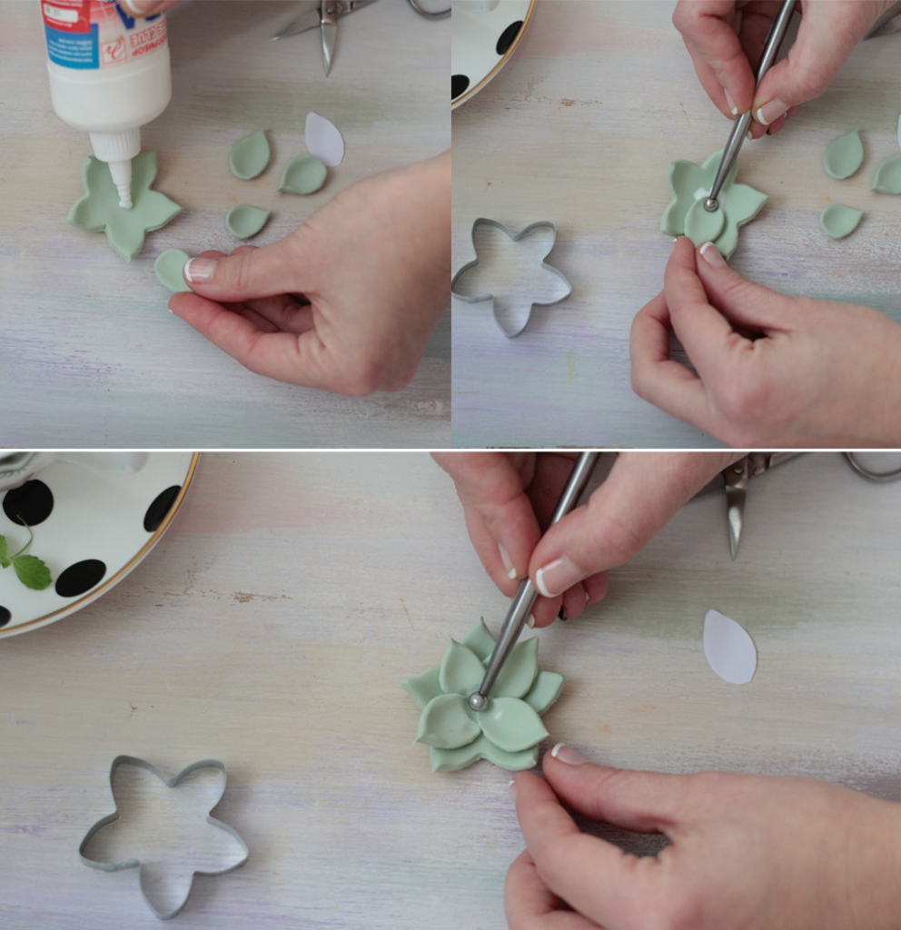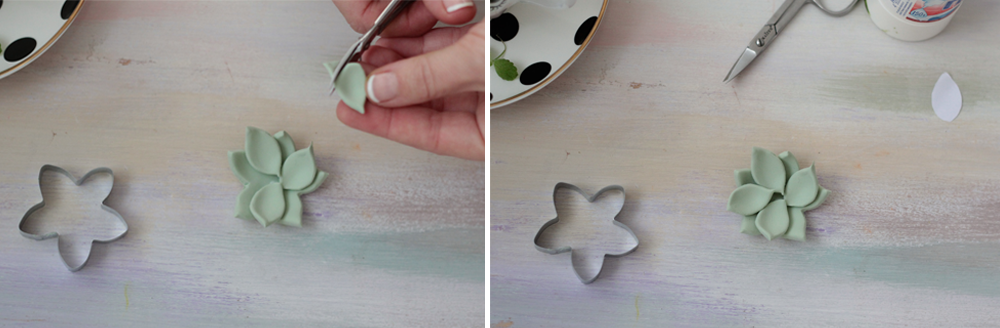 - Теперь из оставшейся глины вырежем ещё 4-5 лепесточков.