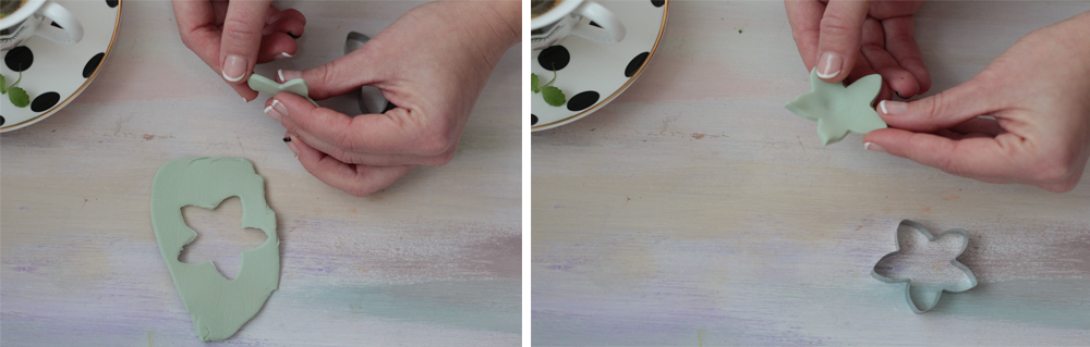 Толщина пласта будет примерно 4-5 мм. Вырежем катером форму цветка. Либо ножницами по нарисованной выкройке.