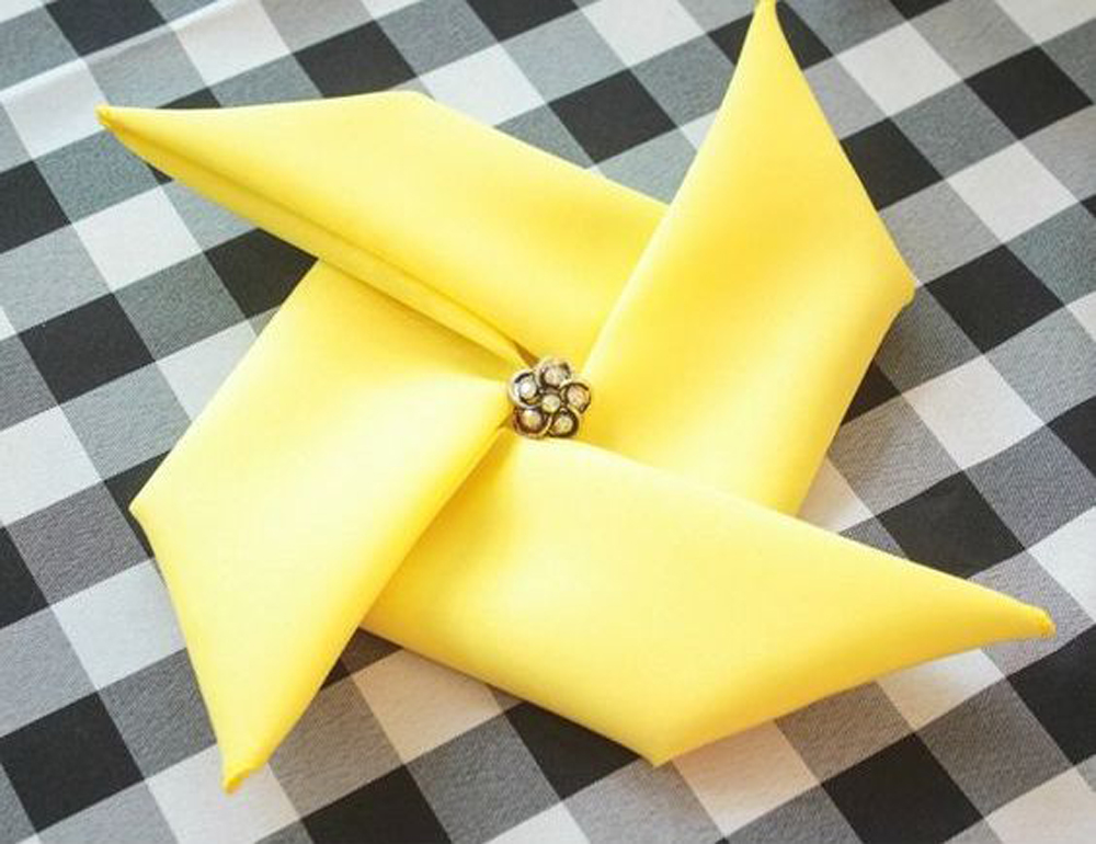 - Отгибаете края салфетки через один. Все, изысканный тканевый или бумажный флюгер готов.