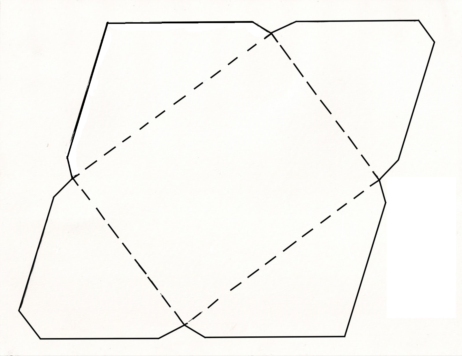 - По начерченным линиям отрезаем два получившихся треугольника. Заготовка конверта готова.