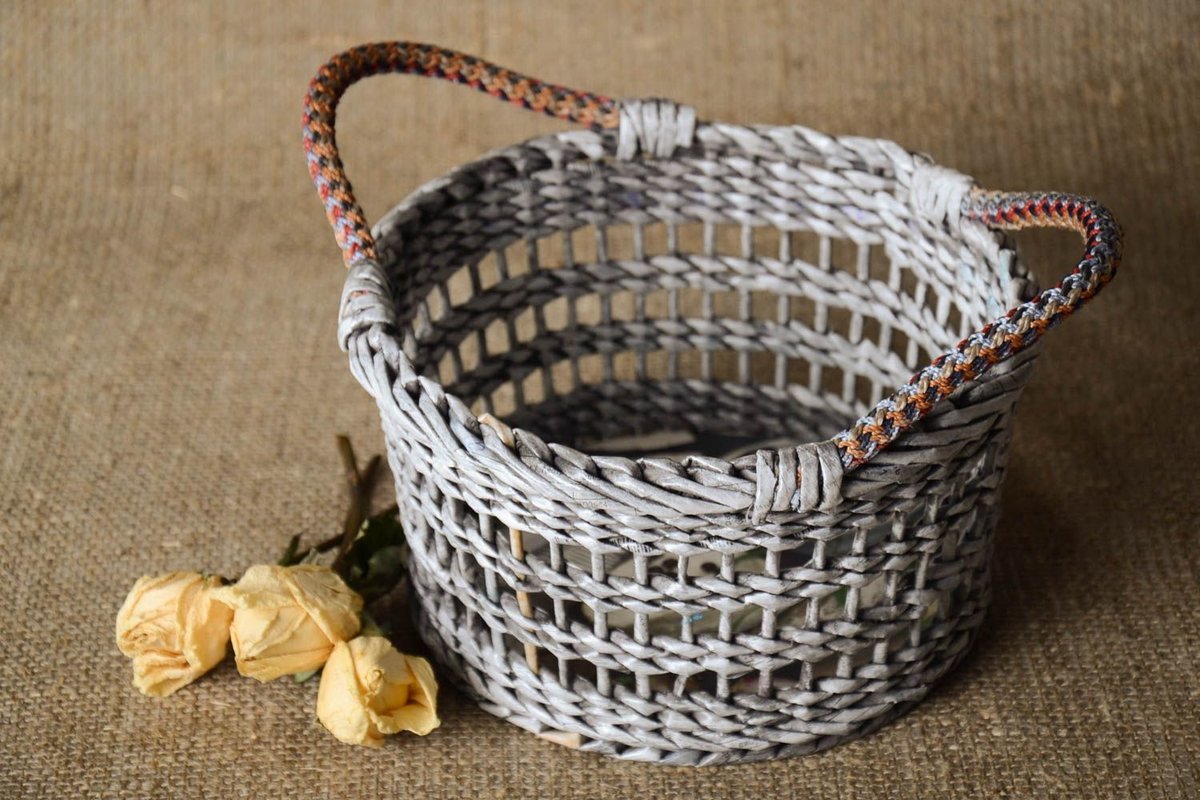 Корзинка из газетных трубочек для начинающих пошагово