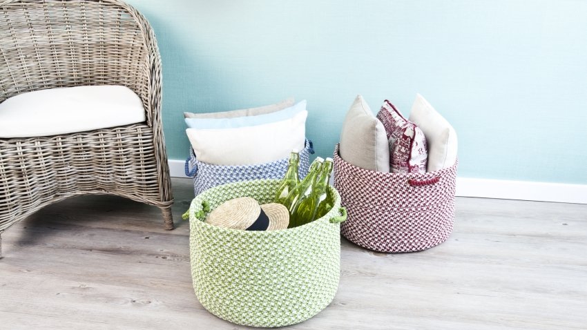 Корзины из толстых веревок весьма декоративны.