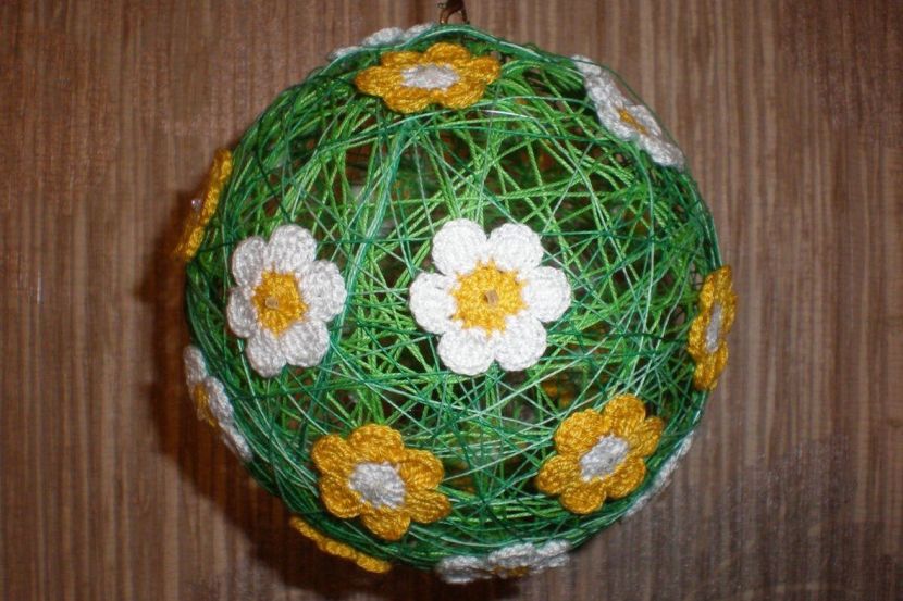 Эту технику можно использовать не только для светильников, воспользуйтесь этой техникой при изготовлении корзинок. Чтобы сделать ажурную корзину обмотайте шарик не полностью, а наполовину и также дайте изделию просохнуть.