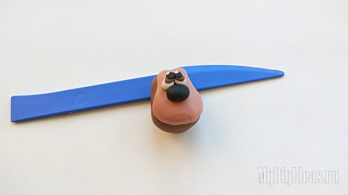 Из последнего кусочка коричневого пластилина сделайте тонкий длинный хвост и приклейте его сзади.