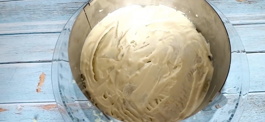 На каждый слой салата Мимоза наносим сеточку из майонеза. В составе блюда особо сочных ингредиентов нет, поэтому майонеза не жалейте, чтобы салат не получился сухим.