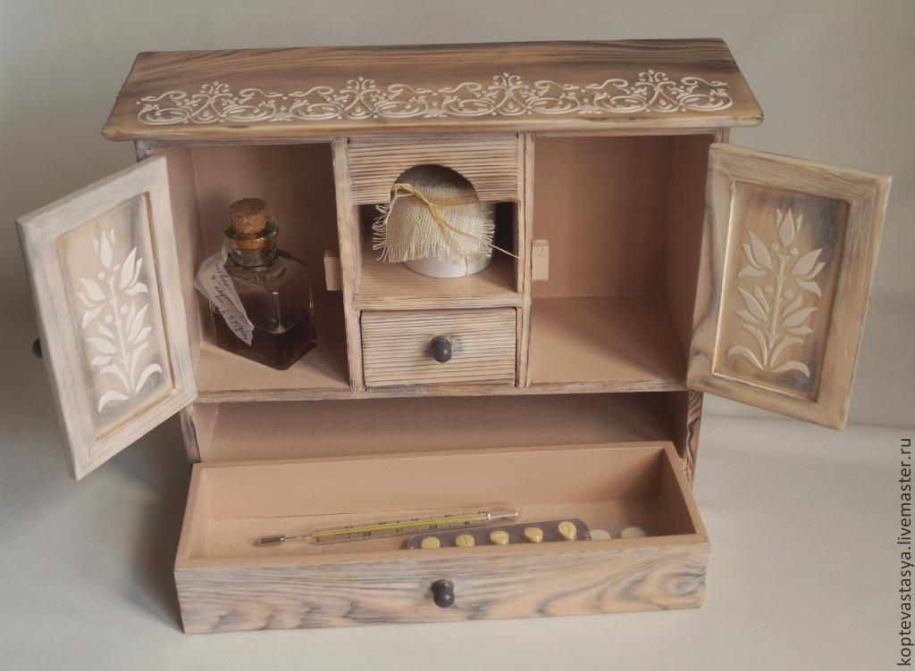 Такая вещица выглядит очень красиво. Купить или сделать органайзер в виде комода можно в любом стиле.